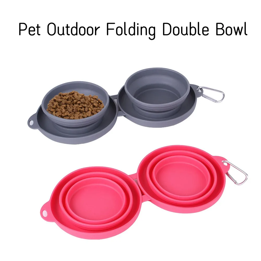 Thickened TPE Folding Silicone Pet Bowls Outdoor Pet Double Bowls Tableware Wholesale Pet Supplies Portable Dog Bowls
